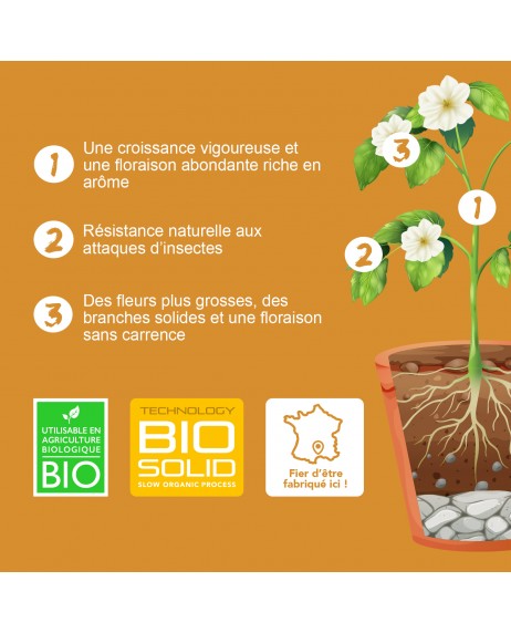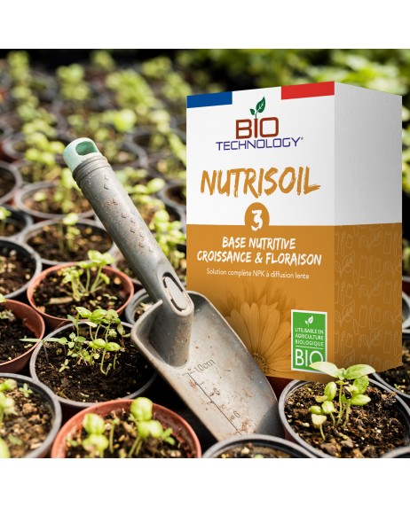 Mélanger Bio Technology Nutrisoil 3 directement dans votre substrat en début de croissance.